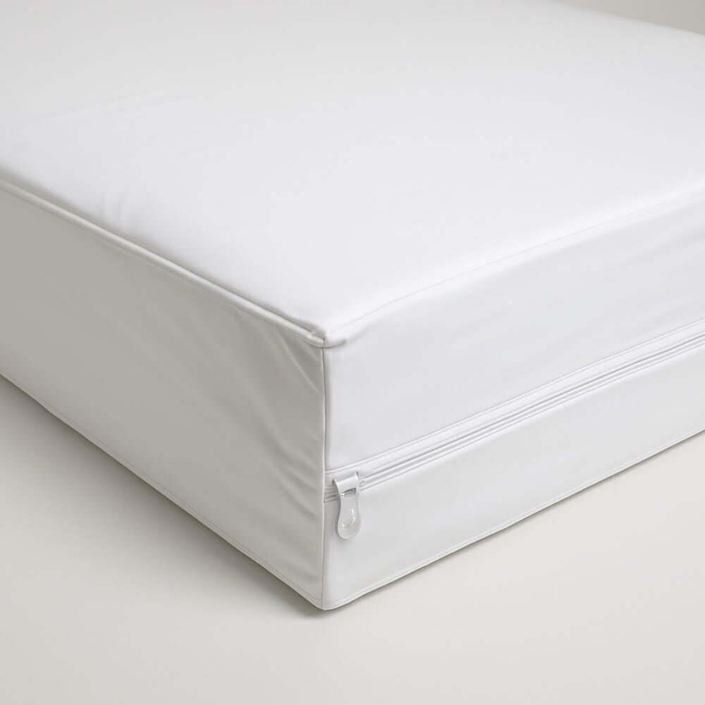 Waterproof vinyl Mattress protector to shield your mattress against various types of damages and wear. Fully encased with zipper closure. Machine washable and tumble dry.