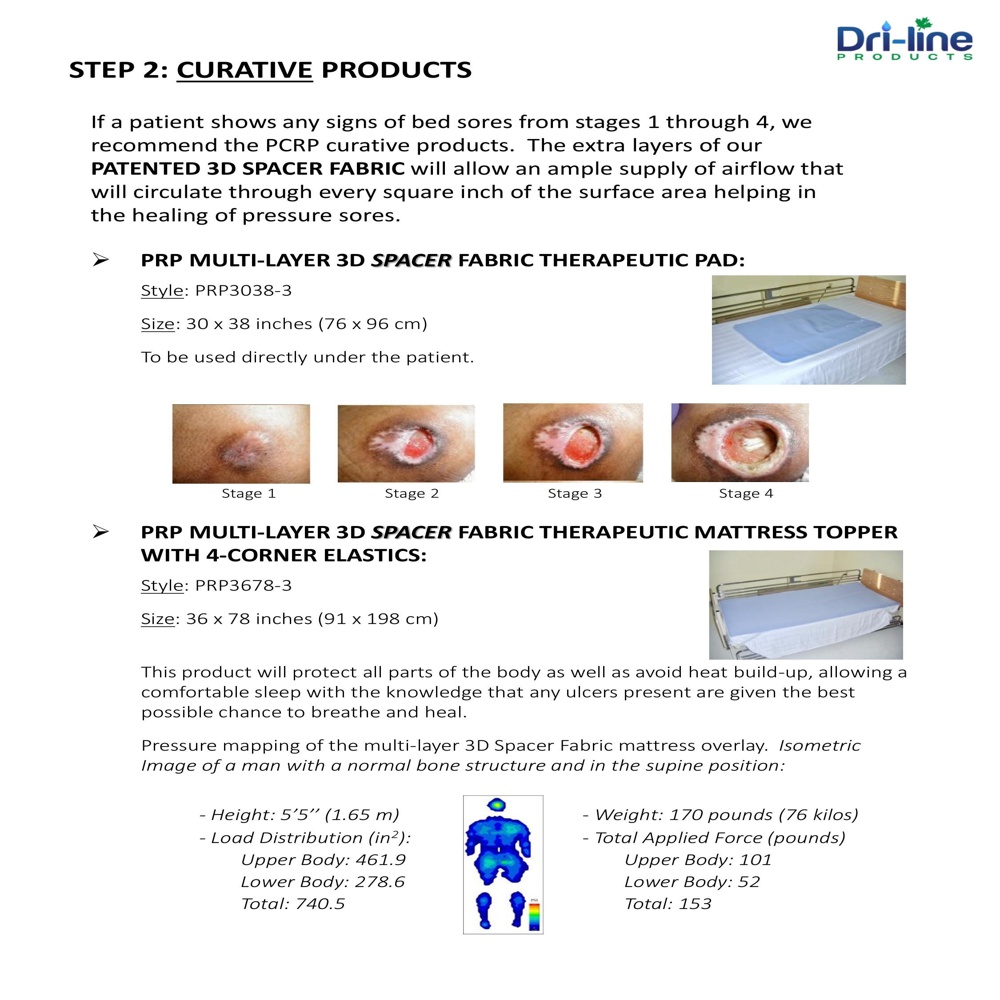 If a patient shows signs of a pressure sore, we recommend one of our PRP Multi-Layer 3D Spacer Fabric products.